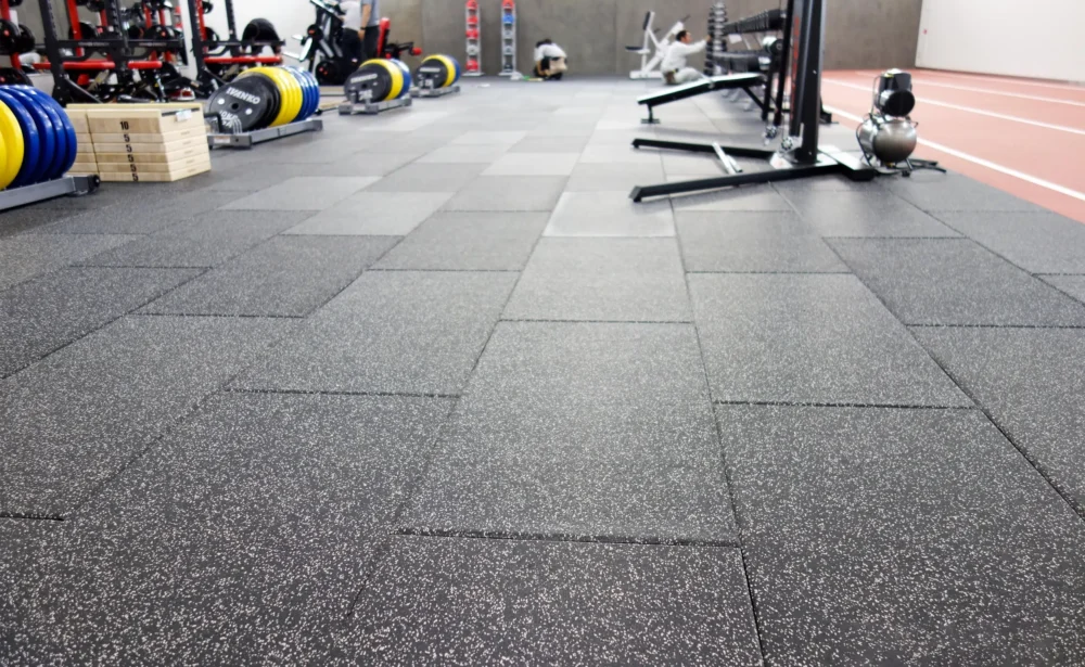 Rubber flooring is the ideal solution for fitness spaces because it provides durability, shock absorption, and slip resistance.